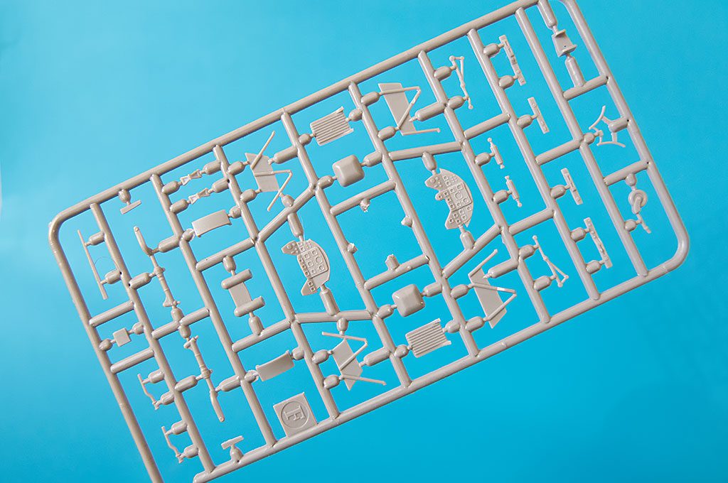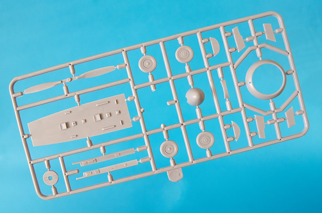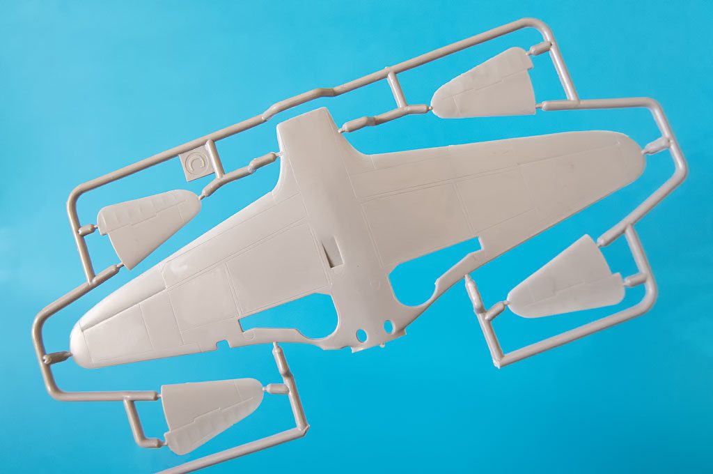 The 1:48 Yak-11 scale model comes in a two-piece cardboard box. It does the job, but it’s not the most protective packaging, something to keep in mind if you’re ordering it online or planning long-term storage. The parts are distributed across six sprues, including one clear frame. The transparent elements include: the windscreen, the one-piece canopy, the landing light positioned in the left wing. At first glance, the molding quality looks good, with relatively clean parts and minimal flash.